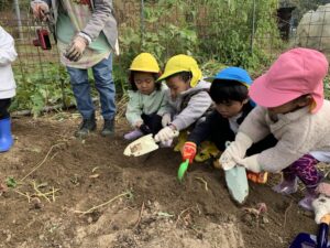11月18日㈫にさくらのひまわり組さんと一緒に芋ほり遠足に行きました!                                                                                             お~きなお芋にびっくり‼
