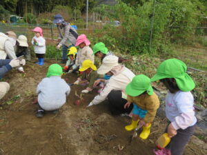 11月18日(火)にひまわり組とモモのぞう・うさぎ組さんで芋ほり遠足に行きました。とっても大きなお芋がたっくさん収穫でき、たくさんのお芋を見て子どもたちも大興奮でした!うれしそうに「ママが作ったぁ!」と言ってお弁当もよく食べられました(^^♪